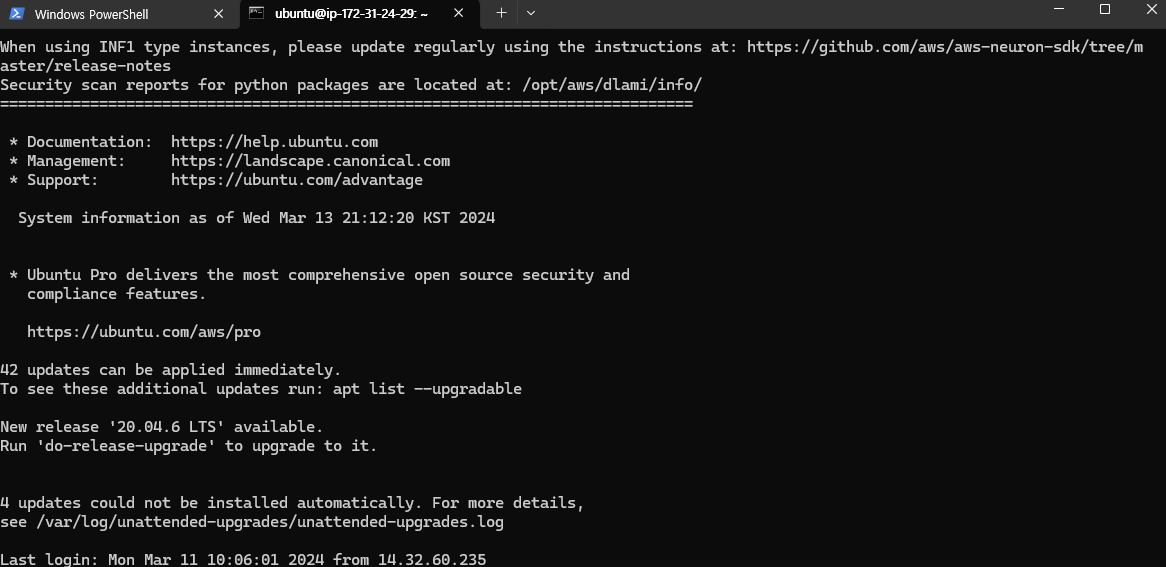 결국 성공해서 접속완료했다!