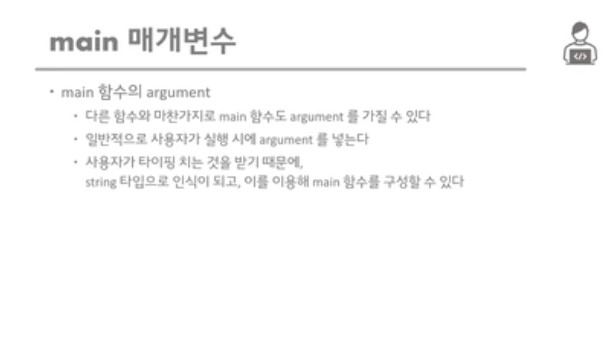 이러한 main 함수 매개변수를 활용하면 사용자가 프로그램을 실행할 때 전달한 인수를 처리할 수 있다. 예를 들어 파일 이름이나 옵션 등을 전달받아 프로그램의 동작을 제어할 수 있다.