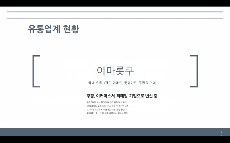 현재 한국의 유통업은 이마트, 롯데마트, 쿠팡 이렇게 3가지 기업이 3강을 이루고 있다.