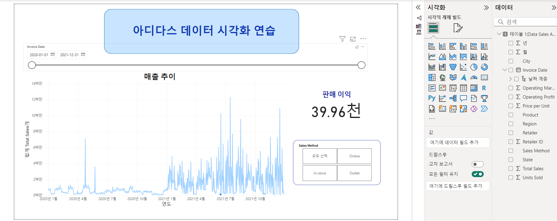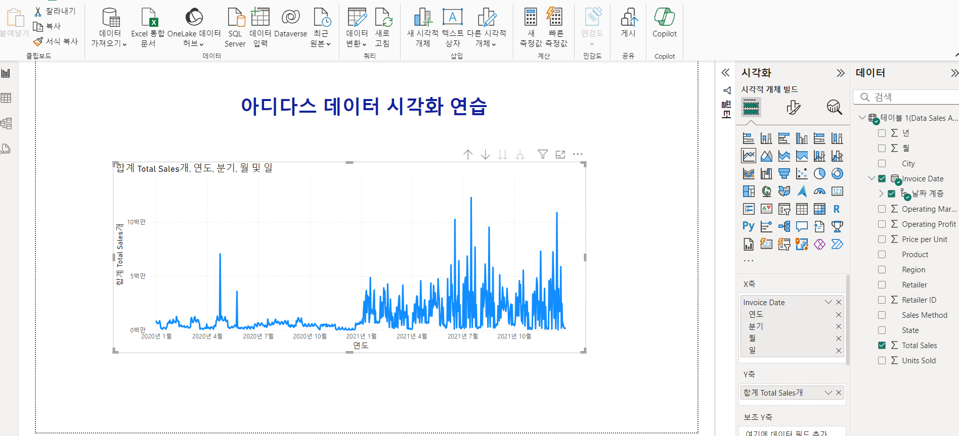 저번에 이어서 아디다스 판매 데이터 셋을 활용해서 학습을 진행해보았다.