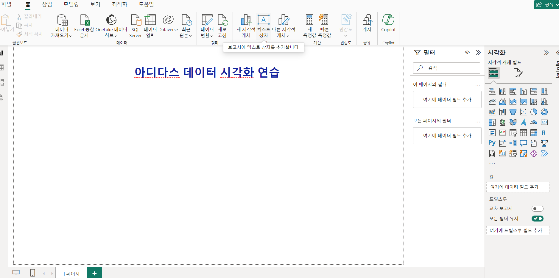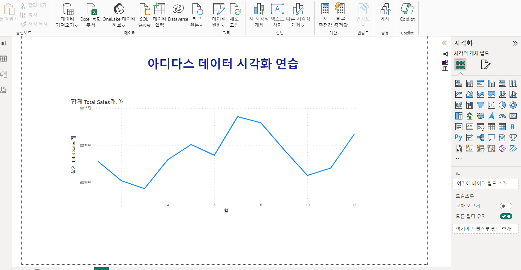 파워BI를 배우면서 느끼는 생각은 파이썬을 활용해 시각화하는 것보다 훨씬 간단하다..?
