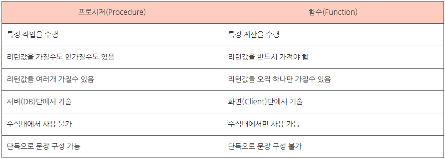 프로시저(Procedure)와 함수(Function)의 차이