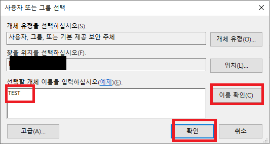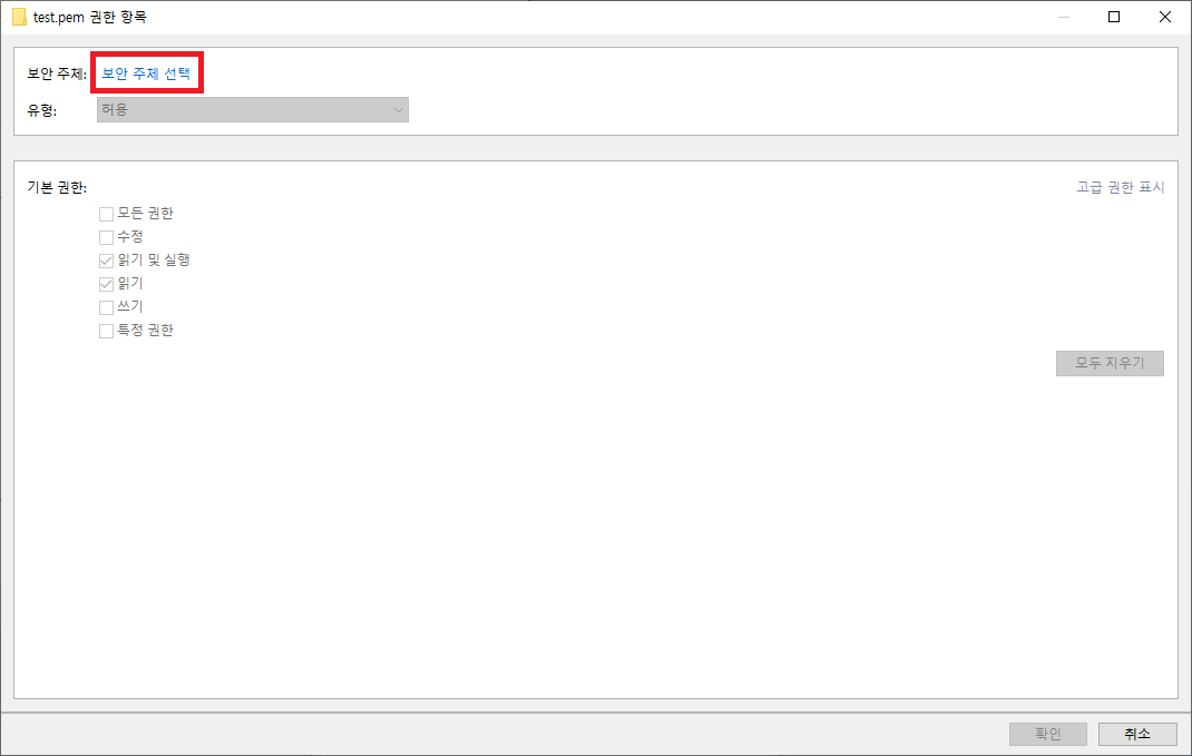 "읽기 및 실행"과 "읽기"만 체크 후 확인