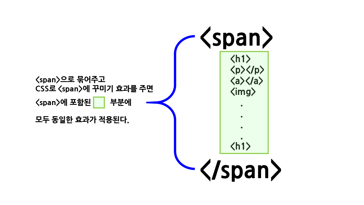 - 정의: <span> 태그는 텍스트나 다른 인라인 요소들을 위한 컨테이너이다.