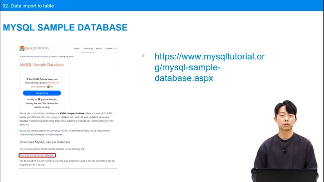 sql파일을 다운받아 데이터베이스를 구성하면 된다.