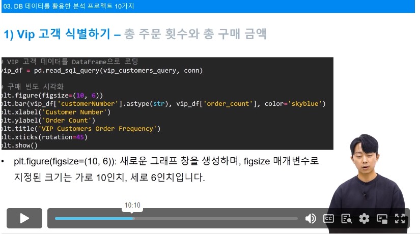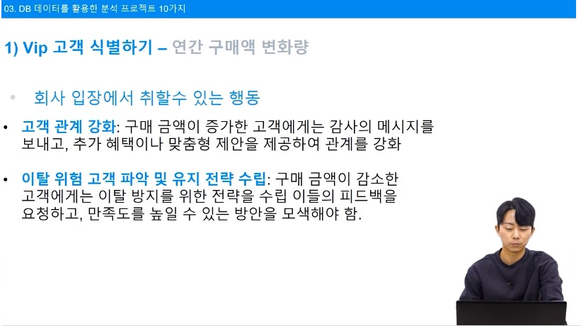 총 10가지의 분석이 있고 코드도 다 있기 때문에 내가 사용할 데이터베이스에 맞춰 수정해도 사용하면 좋을 듯 하다.