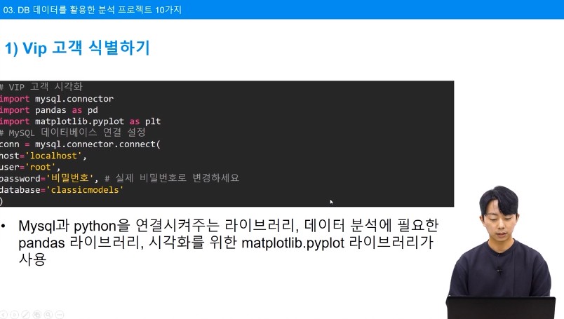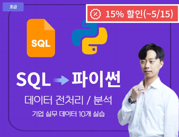 SQL과 파이썬을 둘 다 학습했지만 연결해서 사용해본 경험은 없었다. 그래서 이 강의를 보자마자 신청을 해야겠다라고 생각이 바로 들었다 ㅎㅎ 짧은 강의시간이지만 정말 핵심만 알차게 넣어둔 강의, 지금 리뷰를 시작하겠다