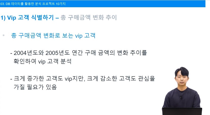그래서 고객과 제품을 분석해서 실제 마케팅에 활용할 수 있는 수업이 진행되었다.