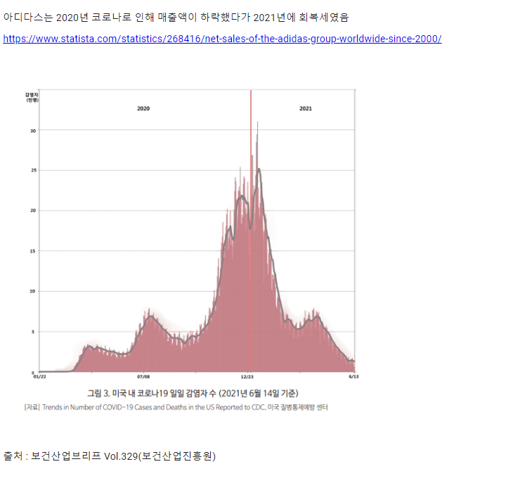 2020년 감염자의 수는 정점을 찍었고 하반기로 갈수록 점점 줄어들었다. 이에 판매가 다시 증가하였고
