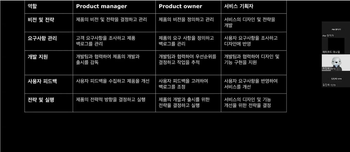 여기서 서비스기획자와 Product manager에 대한 차이에 대한 이야기가 나오는데