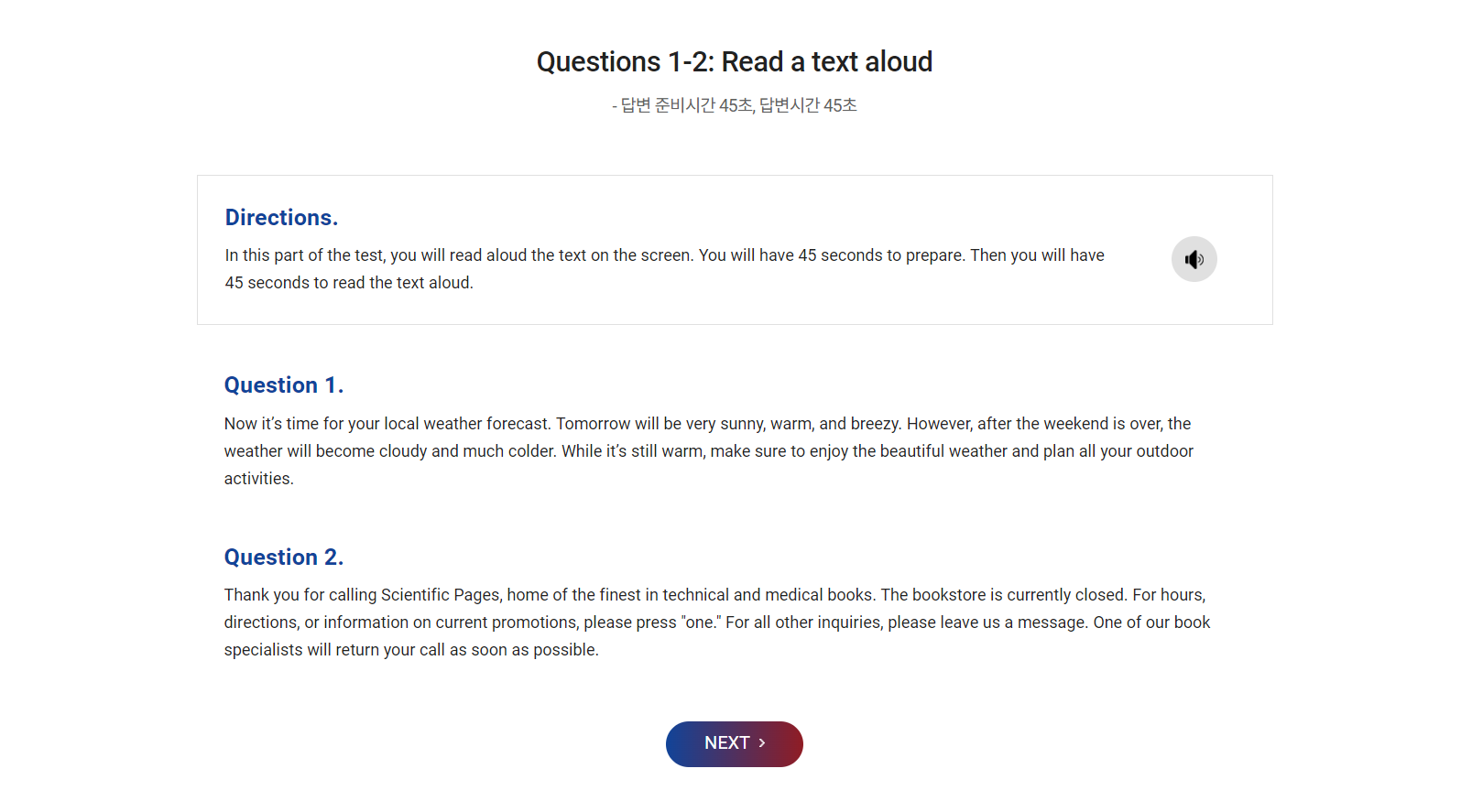 파트 1에서 가장 중요한 것은 자신감, 크고 자신있게 현장감있는 발음으로 대답하면 된다.