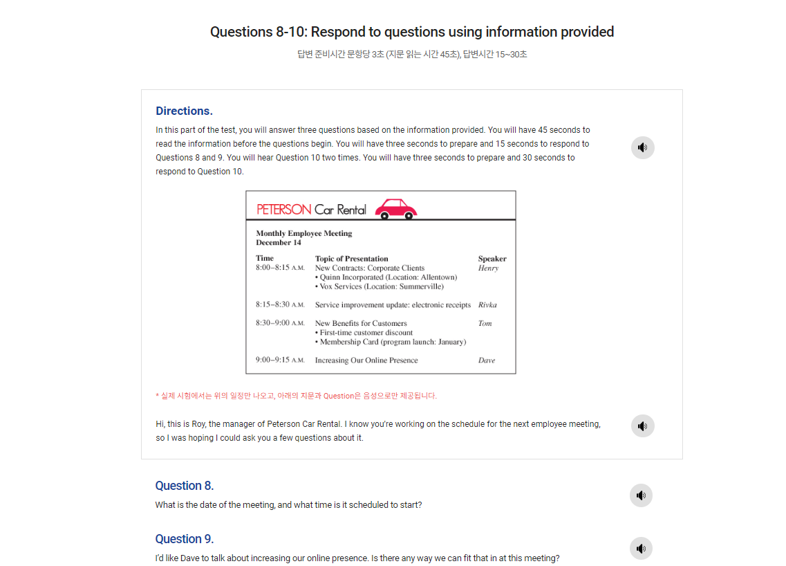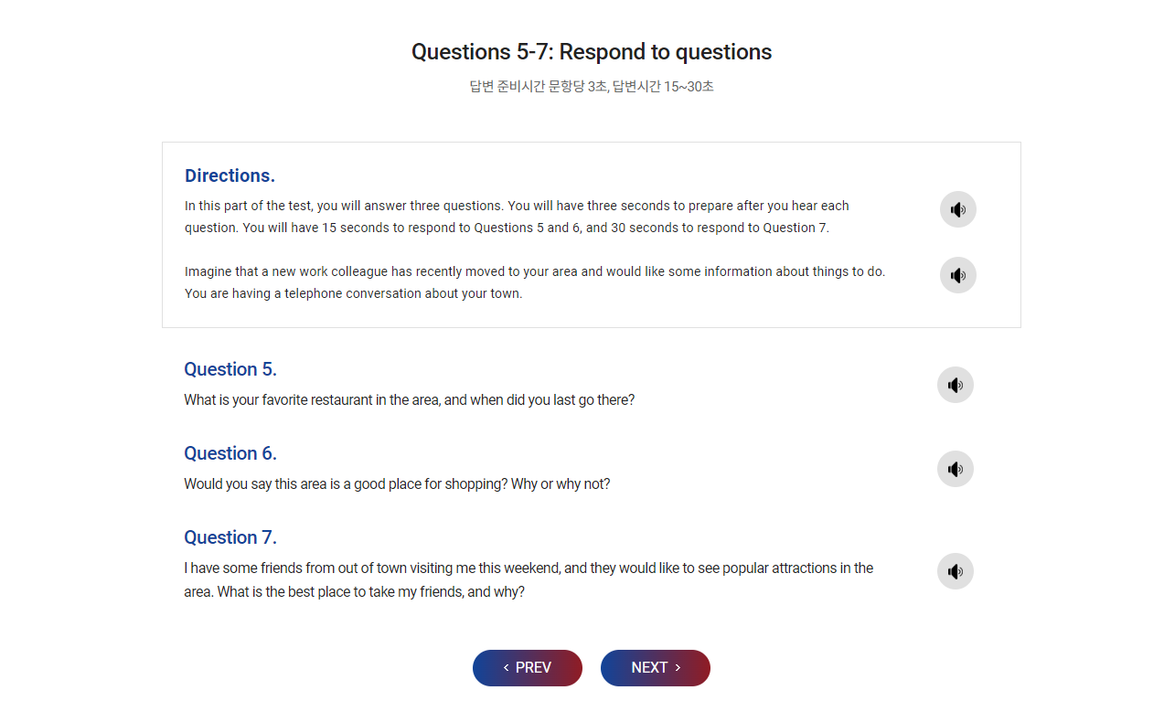 외운 템플릿의 주제에 맞춰 대답을 한다.시간이 짧으니 최대한 간결하게 진행하는 것이 이번 파트의 목표