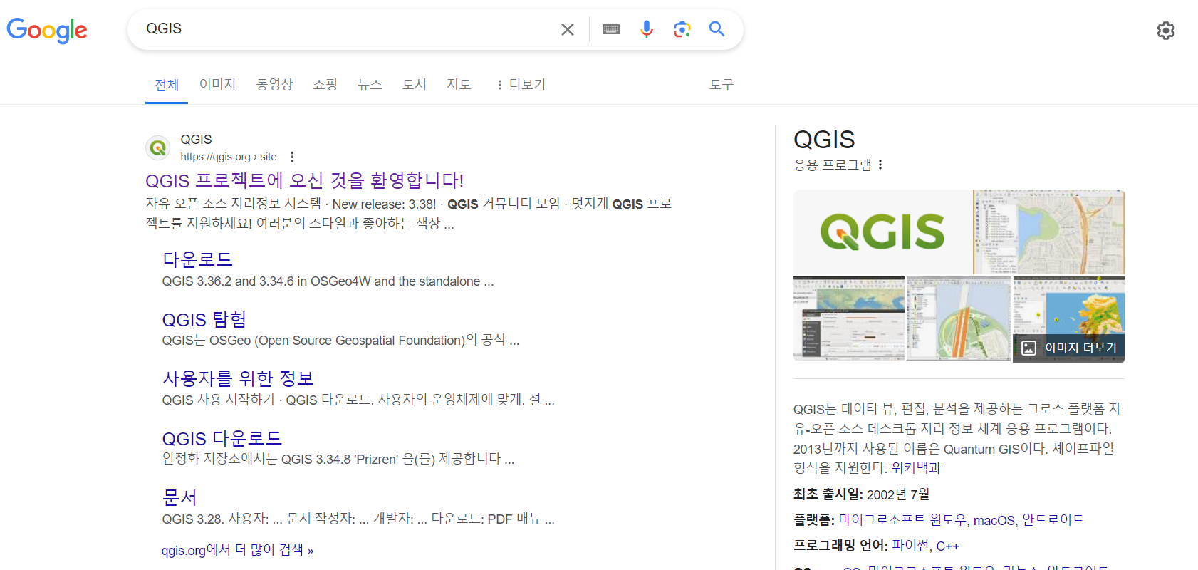 먼저 받아야하는 시스템이 있다. QGIS라는 자유 오픈 소스 지리정보 시스템을 다운받도록 하자.